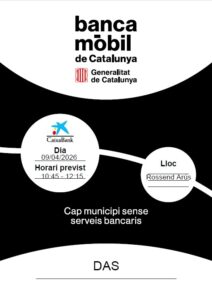 Agenda BANCA MÒBIL -DAS 09.04.26 08/04/2026 - 10/04/2026 09.04.26 Banca Mòbil Das, Pg Rossend Arús (Davant de l’Ajuntament) < Entrada Anterior