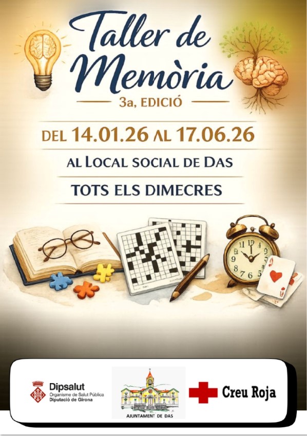 Agenda TALLER DE MEMÒRA 14/01/2026 - 17/06/2026 3a Edició del Taller de Memòria a Das < Entrada AnteriorEntrada Posterior >