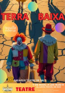 Agenda TEATRE TERRA BAIXA 7 DE MARÇ 25/02/2026 - 07/03/2026 Dissabte 7 de març a les 18h podreu gaudir de l’obra de teatre Terra Baixa amb el grup Safareig Teatre de Salt al Local social de Das. Us hi esperem!!! < Entrada AnteriorEntrada Posterior >