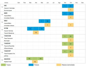 Tots aquells rebuts domiciliats de quota tributària d’import igual o superior al que disposa l’ordenança fiscal corresponent es fraccionen d’ofici en els terminis i les dates indicades. Les persones interessades que en el moment de l’acreditació de l’impost (1 de gener) no el tinguin domiciliat i vulguin acollir-se a aquesta possibilitat podran fer-ho, prèvia presentació de la corresponent sol·licitud en aquest sentit. A aquests efectes, l’esmentada sol·licitud s’haurà d’adreçar a l’Ajuntament titular de l’ingrés o a XALOC un mes abans que s’iniciï el termini de pagament en període voluntari, o fins la data indicada en l’ordenança fiscal del tribut o la general de gestió del seu municipi. Altrament, la sol·licitud tindrà efectes per al següent i posteriors exercicis tributaris.